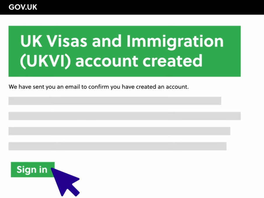 - Sau khi tài khoản UKVI đã được tạo, bạn sẽ nhận được email xác nhận thông tin và đường link truy cập vào tài khoản.