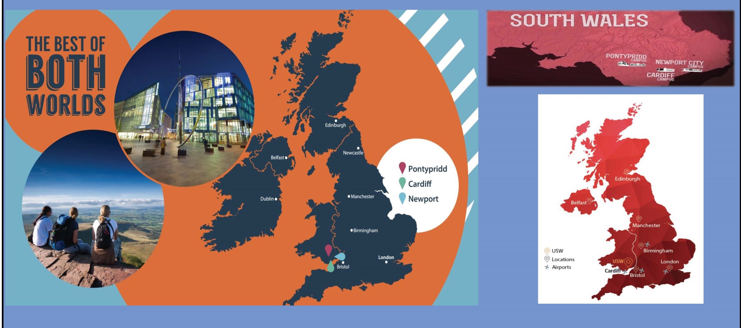 University of South Wales (USW) được thành lập năm 2013 thông qua việc sát nhập giữa trường University of Glamorgan và University of Wales. Trường hiện là một trong những trường đại học lớn nhất tại Vương quốc Anh với hơn 33,000 sinh viên tới từ hơn 120 quốc gia khác nhau đang theo học. Trường có 4 campus tại South Wales – Cardiff, Treforest, Newport, Glyntaff – mỗi nơi dành cho các bộ môn khác nhau. Là một trong những trường đại học lớn nhất tại xứ Wales, USW nổi tiếng với: