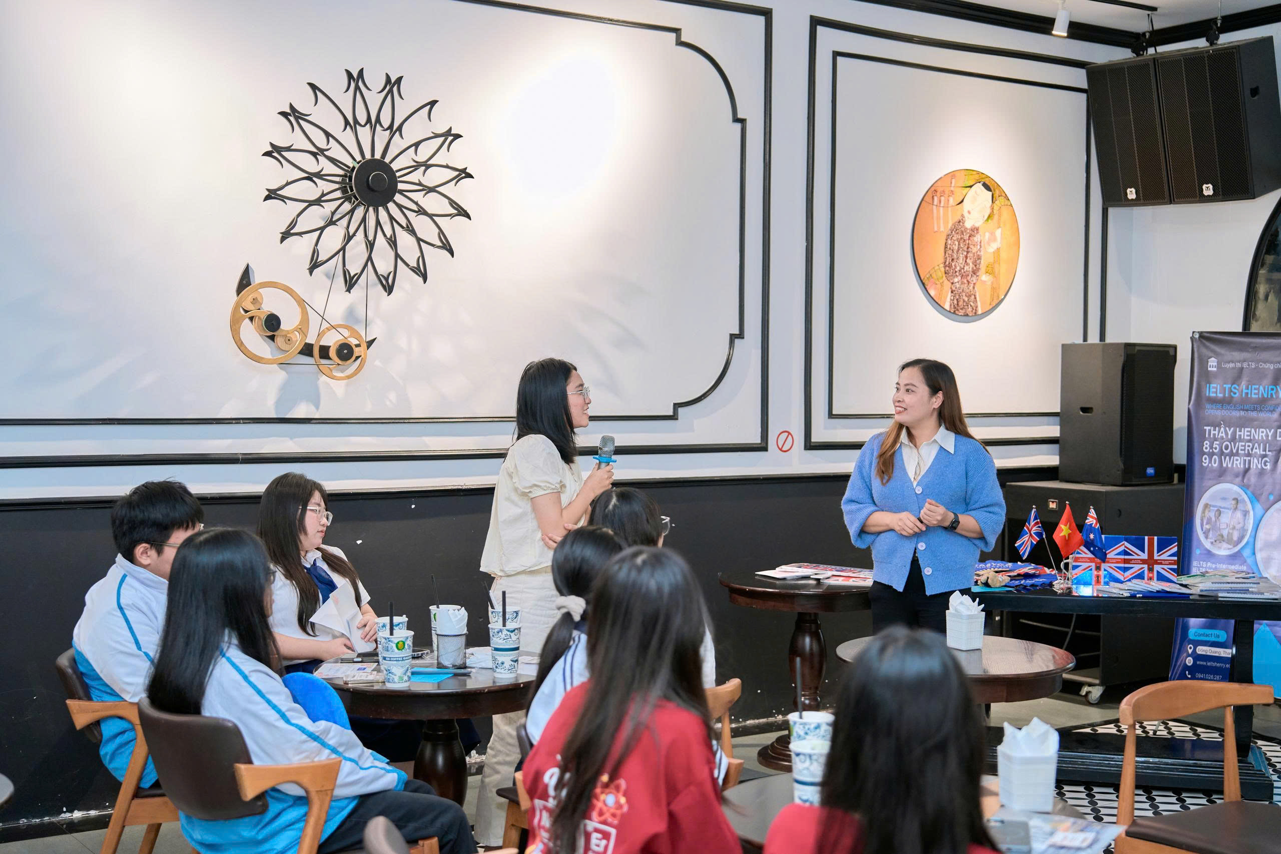Song song với đó, đại diện IELTS Henry cũng đã chia sẻ về tầm quan trọng của năng lực tiếng Anh trong quá trình xin học bổng, cách xây dựng lộ trình học IELTS phù hợp với từng mục tiêu học tập, giúp học viên tối ưu điểm số và tăng khả năng cạnh tranh hồ sơ.